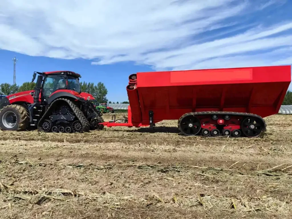 A incorporação de esteiras de borracha de alto desempenho, como o novo Equalizer® SP Track System, transforma essas carretas, oferecendo maior tração, menor compactação do solo e máxima estabilidade, mesmo em terrenos macios ou úmidos.